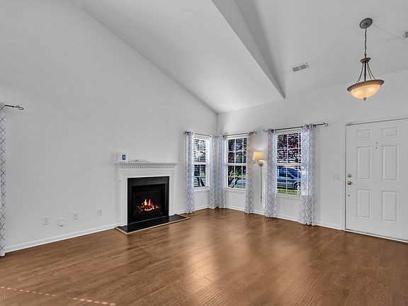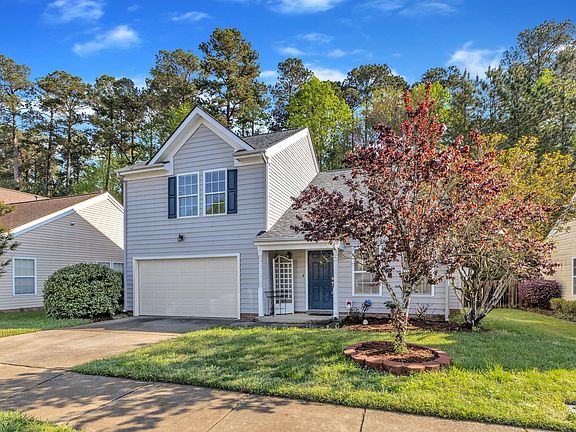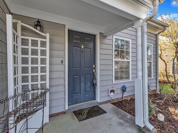 Welcome home to this SW Durham gem! Fully fenced, backs to woods, built-ins and window treatments throughout, plus epoxy garage flooring. The bright and airy living room features vaulted ceilings and a cozy gas log fireplace—ideal for relaxing evenings or casual get-togethers. The spacious kitchen features a vented range and opens up to its own spacious den, giving you flexible living spaces. Upstairs, you'll find three comfortable bedrooms and a separate laundry area. Out back, enjoy a fully fenced yard with a large patio that backs up to a treed buffer for privacy—a great spot for entertaining or recreational activities. All appliances convey, including the Whirlpool washing machine, Maytag dryer, GE fridge. The community offers a clubhouse, playground, and a huge pool for summer fun, all just minutes from I-40, UNC, Duke, RTP, and tons of shopping and dining options. Come see it in person—you'll feel right at home!