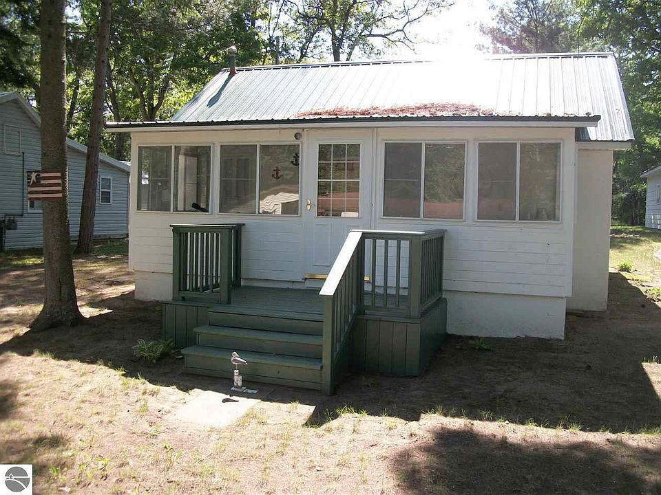 CUTE LITTLE CABIN VERY CLOSE BOAT LAUNCH ON SAND LAKE, HAS A 1&1/2 CAR GARAGE, ENCLOSED SUN ROOM, MUD ROOM, METAL ROOF. LIVING ROOM, KITCHEN, AND DINING ROOM COMBINED IN ONE OPEN AREA. HEATED BY WARM MORNING TYPE HEATER. ENCLOSED PORCH 7'8"X 16' 124 SQ. FT. OF SPACE FOR SUMMER TIME USE.