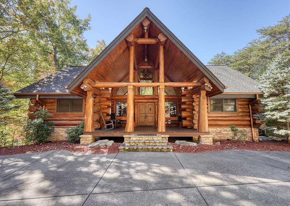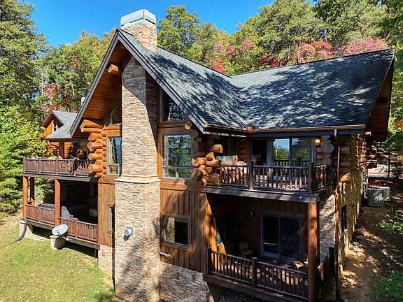 Authentic Canadian Log home in the heart of Blue Ridge - a masterpiece of massive hand-hewn logs w/ 4 spacious bedrooms (including a fun bunk room for the crew) and 3.5 baths. Three massive stone fireplaces crackling with mountain magic, and cozy porches to view gorgeous sunsets & mountain views. You will gaze in awe of the master craftsmanship & incredible wood carvings throughout. Add a Chef's kitchen w/ waterfall counter, Huge game room with w/ wet bar, 2 laundry areas, hot tub, 2 car garage (extra high doors), private well & community well (2 water sources) & whole home generator. Large lot with 1.75 acres in gated community with all paved access, just 5 miles to downtown, Lake Blue Ridge & Toccoa River & USFS Trails. Would be great vacation rental - Perfect place for unplugging and hosting EPIC Blue Ridge vacations!