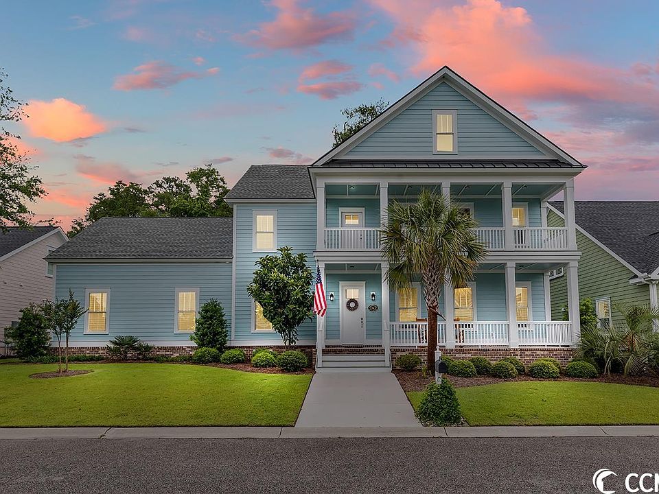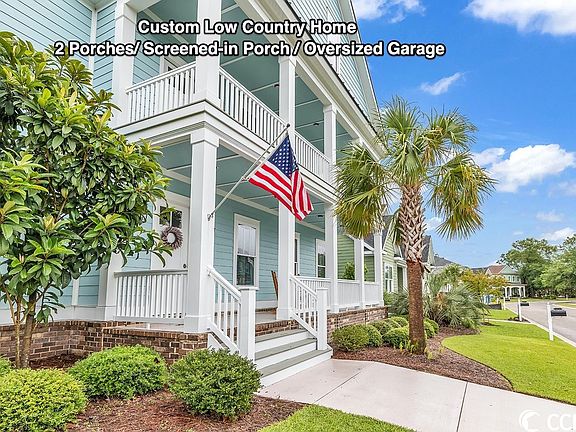 Custom low country style home in beautiful Charleston Landing boasts 4 Bedrooms plus an additional flex room/office/den, 3.5 Baths, a spacious great room with a fireplace and coffered ceilings, an elevator, two Charleston-style front porches, and a screened-in porch where you can relax after a long day at the beach. Kitchen features granite countertops, stainless steel appliances, spacious walk-in pantry, a large working island, under-cabinet lighting, soft-close cabinetry/drawers, electric stove with a gas connection option, and exterior stove venting. The great room features beautiful luxury vinyl plank flooring, coffered ceilings, and a fireplace - ideal location for entertaining friends and family. Spacious upstairs primary suite features a tray ceiling, a generous 11'2" X 8' walk-in closet, double vanity sink, separate tile shower and tile surround tub, and private water closet. There is one bedroom downstairs with a private bath along with the office/den/flex room, and there are three bedrooms, including the primary bedroom upstairs. The two guest rooms upstairs are a generous size and share a Jack and Jill bath, with a double vanity sink. Upstairs you will also find a large sitting area, spacious laundry room with cabinetry for storage and a granite countertop folding area, a spacious linen closet and a 27' X 13' floored walk-in attic with added panel walls where you can store holiday items and much more. Oversized rear-load 26' X 25' garage. Two southern front porches, a 14' x 14' screened-in porch, and an irrigation system. Additional features include six inch studs in framing, breaker panel wiring for generator, crown/base/window moldings, gutters, additional handrails for stairs and handicap bars in all bathrooms and garage, granite in kitchen/laundry room/ bathrooms, soft-close toilets throughout and an easy-clean toilet in the primary bedroom, automatic lighting in various rooms/closets/pantry, ceiling fans in living and all bedrooms, and low-maintenance PVC railings on the front porch. With only one owner, this immaculate custom home has many extras added you won't find in new construction. The most discriminating buyer will find that no detail has been left out. Southern living as its best in Charleston Landing where you will find mature trees, ponds, sidewalks, playground, gazebo, a community pool overlooking the Cherry Grove marsh, and boat storage. Charleston Landing is just a couple of miles to Cherry Grove beaches and minutes to shopping, hospitals, a variety of restaurants and easy access to Hwy 31 is just minutes away. Square footage is approximate and not guaranteed. Buyer responsible for verification.