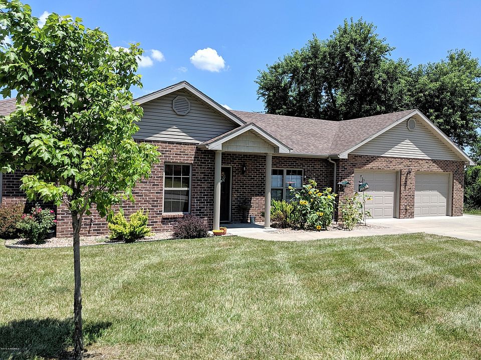 Main level living in a 5 year old house. Oversized garage with plenty of room for vehicles and extra storage. Great floorplan with tall vaulted ceilings. Corner lot, big front and side yards. Irrigation system is in place. Double Vanities in Master Bathroom suite. Move in ready home close to Downtown JCMO.