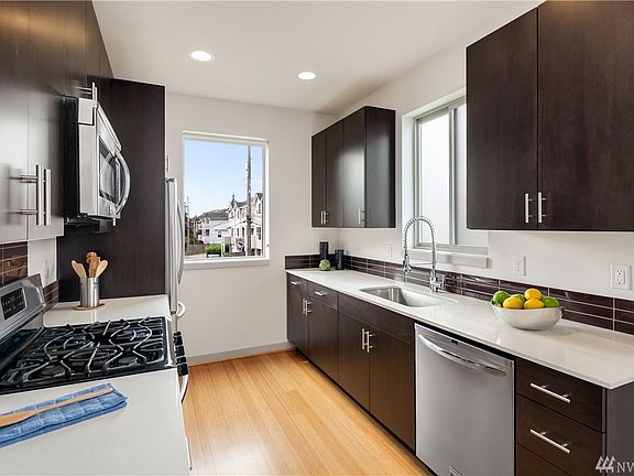 Better than new, stand-alone home in ultra-convenient location! Near all Green Lake has to offer w/easy commute to downtown! This home lives large w/lots of windows, designer touches & a bedroom and bath on every level! Open concept living & dining w/spacious kitchen w/Caesarstone counters & stainless appliances! Oversized master suite w/vaulted ceilings, spa-like bath, huge walk-in closet & spacious deck. 2nd master w/full bath & fully fenced patio on lower level. 1-car garage w/extra parking!