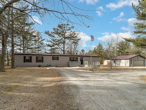 Welcome to your serene retreat at 1323 N. Huron St. in East Tawas!  This inviting 2 bedroom 2 bath home sits on just under 2 acres of tranquility with Lake Huron deeded access just across the road.  The perfect up north getaway for those seeking peace and quiet just outside of town.  Incredible updates including a new metal roof and vinyl siding, new septic field & tank all in 2019.  New furnace, A/c, HWH, and, new plank flooring throughout.  There is a stone surround wood burning fireplace in the open concept living room to enjoy cozy evenings or your morning coffee!  Detached 2 car garage is perched on the circle drive and complete with electricity, door opener, 2 man doors, generator hook up with a negotiable portable generator, and RV hookup outside.  Don't miss your opportunity to view this move in ready property!