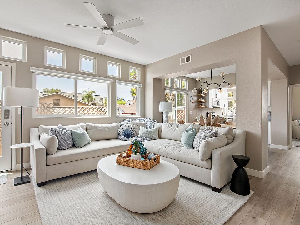 Tucked away in one of Pacific Beach’s most sought-after neighborhoods, Sail Bay, this coastal gem is your ticket to the good life. Quiet, private, and full of style, this west-facing townhome lives like a single-family home—flooded with natural light thanks to big windows and dreamy skylights. Step inside to a bright, open-concept main level where coastal comfort meets thoughtful design. The newly remodeled kitchen shines with sleek custom cabinetry, gorgeous countertops with matching backsplash, and a built-in coffee bar that adds both function and flair. Luxury vinyl flooring flows throughout, durable enough for sandy toes, little feet, or furry friends. The living room centers around a cozy fireplace framed by a beautifully tiled accent wall, creating the perfect spot to unwind. The space transitions seamlessly into the dining area, while a stylish powder bath and a versatile main-level bedroom, complete with a walk-in closet and a built-in Murphy bunk bed. Upstairs, you'll find spacious dual primary suites with en suite bathrooms and a laundry closet conveniently on the same level. The stair case has vaulted ceilings But the real showstopper? The spacious 250 sq ft rooftop deck with panoramic views of Sail Bay and golden sunsets, the perfect place to sip wine, stargaze, or host friends for summer nights under the sky. The well-maintained community shows true pride of ownership and offers two side-by-side parking spots and storage, so beach toys, bikes, and boards all have their place. Only one block from Sail Bay and Fanuel Park. Tucked away in one of Pacific Beach’s most sought-after neighborhoods, Sail Bay, this coastal gem is your ticket to the good life. Quiet, private, and full of style, this west-facing townhome lives like a single-family home—flooded with natural light thanks to big windows and dreamy skylights. Step inside to a bright, open-concept main level where coastal comfort meets thoughtful design. The newly remodeled kitchen shines with sleek custom cabinetry, gorgeous countertops, and a built-in coffee bar that adds both function and flair. Luxury vinyl flooring flows throughout—durable enough for sandy toes, little feet, or furry friends. The living room centers around a cozy fireplace framed by a beautifully tiled accent wall, creating the perfect spot to unwind. The space transitions seamlessly into the dining area, while a stylish powder bath and a versatile main-level bedroom—complete with a walk-in closet and a built-in Murphy bunk bed—make hosting guests or working from home an absolute breeze. Upstairs, you'll find spacious dual primary suites with en suite bathrooms and a laundry closet conveniently on the same level. The stair case has vaulted ceilings But the real showstopper? The spacious 250 sq ft rooftop deck with panoramic views of Sail Bay and golden sunsets—the best place to sip wine, stargaze, or host friends for summer nights under the sky. The well-maintained community shows true pride of ownership and offers two side-by-side parking spots and storage, so beach toys, bikes, and boards all have their place. Location-wise, it doesn’t get better. Just blocks from Fanuel Park, The Catamaran Hotel, and the boardwalk.