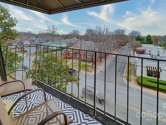 PRIME LOCATION on Queens Road in Myers Park for easy low-maintenance living! This bright sunny top floor space w/private covered balcony has just been updated w/fresh paint throughout, new carpet & new lighting fixtures. Open kitchen, dining & living area provide plenty of space for entertaining and/or work from home. Tons of storage space w/3 large closets & an additional storage unit included- located just down the hall. Generous square footage for a 1 bedroom condo! HOA is an amazing value covering internet, cable, heating, air conditioning, water, sewer, trash, outdoor/lawn care, pest control & reserved parking. Pool w/lounge area, grill, & recently renovated community room that has a dining area, bar & fireplace, are great for relaxing. Plenty of guest parking. Steps away from restaurants, boutique shopping, and grocery. Close to the Greenway, hospitals, I-77 & Uptown. This home is positioned as unbeatable for life in Charlotte at this price!
