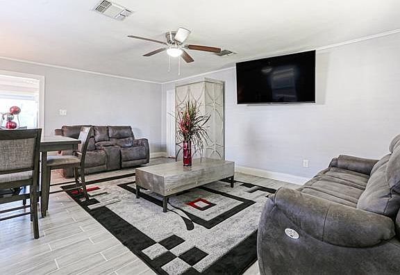 Adorable cottage located in Metairie that features neutral paint throughout, original wood floors in the front of the house, a formal sitting/dining room, crown molding, insulated windows and ample natural light. The kitchen is beautifully updated with white cabinets, granite counters and stainless steel appliances. The kitchen leads to an extra large living room with a durable, wood look ceramic tile and access to the backyard. The primary has its own ensuite with a walk in closet that is also attached to the laundry room. This home has a fully fenced large yard with gated off street parking. Conveniently located close to Airline for easy access throughout the city!