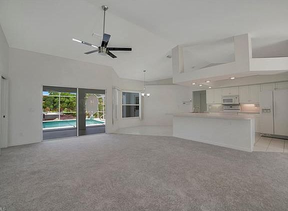 Looking for an affordable gulf access pool home? Here it is! You will love the SW Florida waterfront living experience. Nothing better than watching boats glide by your backyard, the sun sparkling on the water and palm fronds swaying in the breeze. Take a swim in the large solar heated pool. Have your boat waiting for you on your private 6500 lb boat lift, then there's just one 11.25' bridge and a quick boat ride out to the Caloosahatchee River. All assessments are paid and flood insurance is not required in this area. 3 Bedrooms/2 Baths with guest bath opening onto screened lanai. Desirable open floor plan and volume ceiling in great room make the home feel spacious. Arched windows and multiple sliders bring in lots of natural sunlight so the home is bright and cheery. Recent improvements such as new kitchen cabinet doors, new dishwasher, some lighting fixtures and fans, carpet, door hardware and landscaping make this home move-in ready. Perfect for couples just starting out or retirees ready to downsize. Located in a well established neighborhood close to conveniences such as the Midpoint Bridge, Del Prado Blvd, shopping & restaurants.