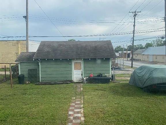 Excellent rental property & location! This bungalow offers, large living area with overhead lighting, attic fan, 5 window A/C units, gas wall heater, detached garage & fence in backyard. perfect size & location for a rental property .