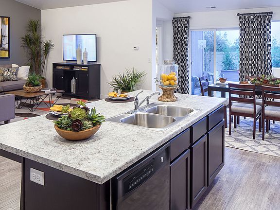 The Stonebrook II is an open concept living single-story home. This home offers 3-4 bedrooms, 2-2.5 baths, a den/office, a two-car garage, and an optional powder room.