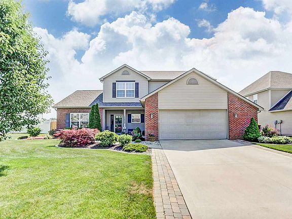 Custom one owner, with many extras! Pride of ownership shows throughout! Well landscaped, fenced back yard. located on low traffic cul-de-sac street. MBR suite on main level has double vanity, walk in closet, garden tub and separate shower. Large eat in kitchen/nook that has extended snack counter and pantry. Great room and den are located on the main level. The main floor laundry room has cabinets above. The upstairs has another living room, full bath and 3 additional bedrooms. Washer and dryer do not stay, all the other appliances will stay, plus all the existing window treatments are included. The garage is 26' wide and 22' deep, built in work bench, cabinets, built in shelves, utility sink and exterior door to the back yard. Abundance of storage throughout. Convenient north location. NWA School system. Average nipsco bill is $41.00, REMC is $141.00, Huntertown water/sewer/trash is $110.00. Water softener is included. There is a small open common area behind the lot.