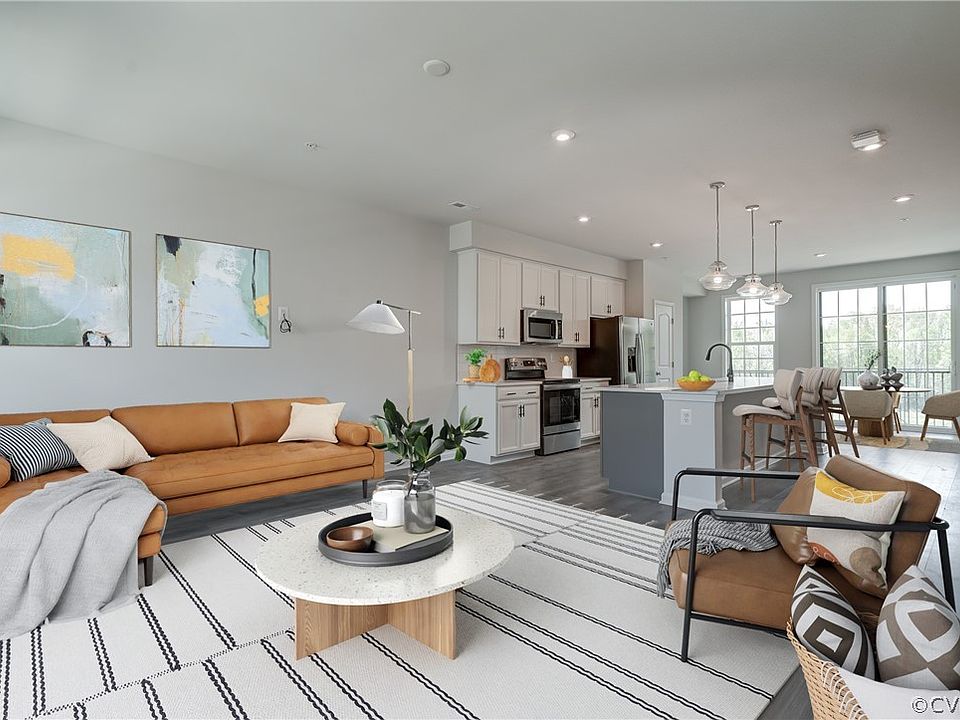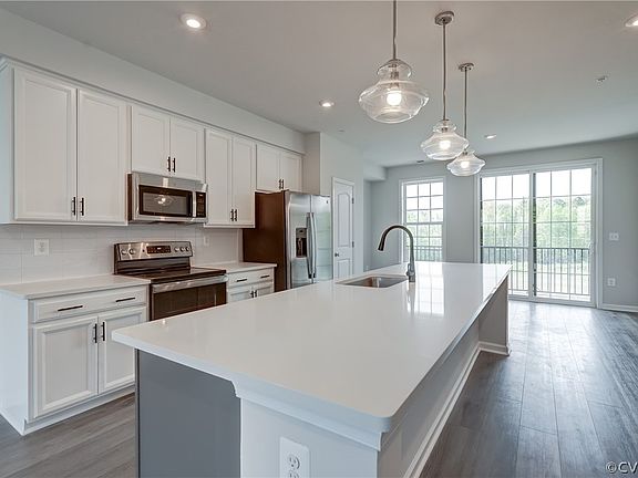 ROOF TOP TERRACE with stunning natural views. Why wait for the new units to be completed and pay $35,000 more? This "like-new" 3-bedroom condo townhome was lived in for less than one year. Seller had to move, so here's the chance to get the same Bethany model as the ones under construction selling for over $435,000. The main level is large and bright, with a giant center island, dining area with balcony overlooking the park and woods behind, and living room pre-wired w/HDMI cables, and a half-bath. Upstairs are three bedrooms, including the primary suite with walk-in closet and en suite bath, hall bath and full-size washer/dryer. Keep going up to your private and spacious rooftop terrace, overlooking the park and forest behind the neighborhood. The direct-entry garage on the lower level brings you into a flex space, also pre-wired w/HDMI cables, that could be your office, game room, etc. This unit is directly across the lane from the central park, complete with large fire-pit, picnic pavillion, grill area and playground. Exterior maintenance, water, sewer and trash removal included in low condo fee.