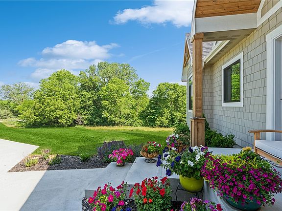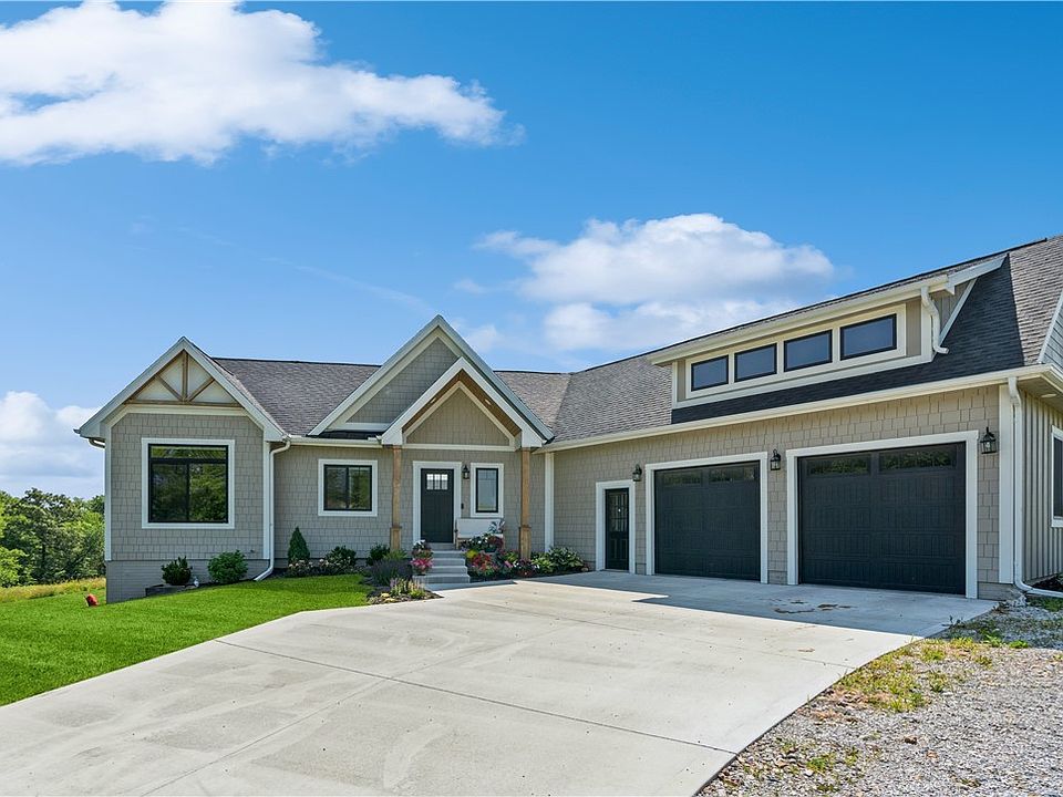 No need to build… the acreage home of your dreams already exists! This custom walkout ranch home, built in 2019, sits aloft on 12 acres in the rolling hills of Warren County. Craftsman details are prominent with shake siding, wood gables, and dormer windows. The entryway leads to the main living area featuring vaulted ceilings, an open stairwell, wide-plank wood flooring, a fireplace with built-ins, and impressive views through large windows with transoms. The kitchen is truly gorgeous with high-end quartzite counters, quality cabinets, an island, gas range, SS appliances, a farmhouse sink, and warm wood accents. There’s a large dining area with deck access through the patio sliders or side door. The primary suite has a lighted tray ceiling and a sliding barn door to the handsome bathroom. You’ll love the WIC with built-ins, tiled shower, heated tile floor, dual vanities, soaker tub, and black accents. There’s a 2nd bedroom on this level, an adorable study, and a laundry/mudroom with a dog wash. The lower level, with 9’ ceilings, includes 2 more bedrooms, a ¾ bathroom, a game area with a wet bar, and a good-sized family room. There’s plenty of storage too! Head outside to enjoy the open prairie, a creek, and 8 acres of forest preserve with trails. There’s a covered deck and a concrete patio. A pole barn is at the south edge of the property.