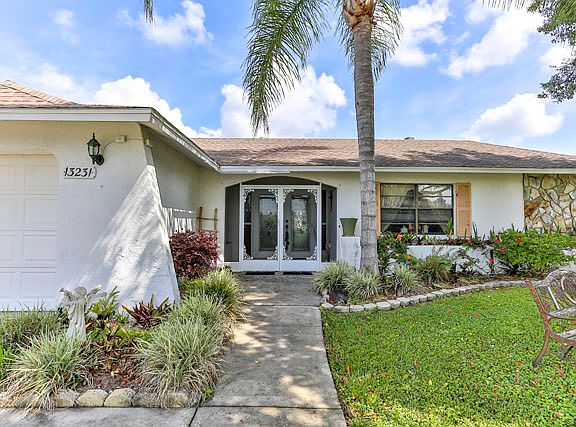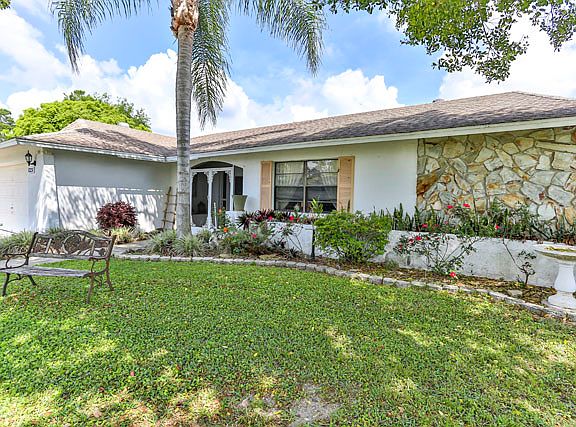 Active with Contract. Cute as can be. This 3 bedroom, 2 bath home with extended 2 car garage sits on a 0.44 acre corner lot and just wait until you see the pool. Home benefits from an open floorplan with vaulted ceilings, updated kitchen with wood cabinets, tile backsplash and a breakfast bar area. Separate dining area, split bedroom plan and a beautiful Florida room/bonus room with heat and air and thermal pane windows. Newer carpet, laminate floors, ceramic tile, screened entry with beautiful double doors. Yard is meticulously landscaped and houses a 12x12 vinyl shed. Newer flat roof, new septic drain field and so so much more.