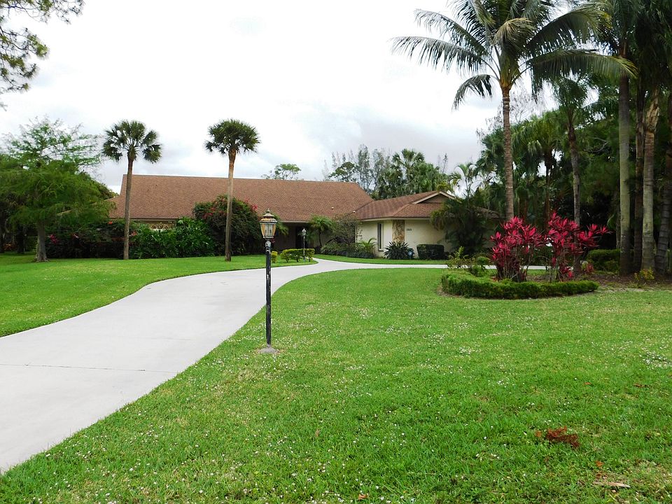 A rare find in Pinewood. Over 6,700 square feet of air conditioned living area in this 4 bedroom home situated on an acre lot. All bedrooms have en suite bathrooms, sitting areas and walk-in closets. Master suite features extensive built-in storage, two walk-in closets, and cabana bath in addition to direct access to the covered patio and screened pool/spa. The paneled den, off the main living room, has a wet bar and extensive built-in display shelving. The outside entertainment area includes a built-in gas grill, wine refrigerator, sink and storage, plus a pass through from the main kitchen. The partial house generator serves the master suite a/c and select kitchen appliances.