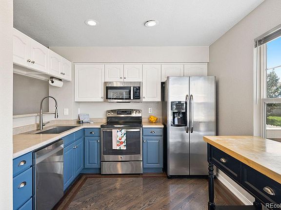 Welcome to your dream home! Prepare to be captivated by this remarkable 2-story, 2-bedroom townhome nestled in the highly sought-after Old Farms neighborhood of Thornton, Colorado. This townhome boasts an ideal location on the community's most desirable block, offering breathtaking greenspace views from nearly every room. Upon entering, you'll be greeted by the inviting ambiance of the main level, featuring soaring vaulted ceilings that flood the space with natural light. This area is perfect for entertaining and creating cherished memories with loved ones; the fireplace warming you in the winter months. The kitchen is a chef's delight, equipped with modern stainless steel appliances, an updated deep sink, and a stylish gooseneck faucet. Both the kitchen and dining room showcase recently updated hardwood flooring.The upper level presents a primary bedroom with not one but two closets, along with enchanting treehouse views. The primary bathroom on this level has been thoughtfully upgraded with oil-rubbed bronze hardware, a new mirror, and an elegant light fixture. A second bedroom offers ample natural light and closet space.The unfinished basement features a full-sized front-loading washer and dryer for your convenience. The basement offers versatile potential, allowing for easy conversion into a secondary living space complete with a bedroom and a full bathroom, complete with an egress window and plumbing already in place. You'll also have the benefit of a detached one-car garage. Enjoy the convenience of dining at Doug's Diner, sipping brews at Mother Tucker Brewery, or indulging your sweet tooth at Sweet Life Cake Shops. Additionally, you'll be within walking distance of the Trail Winds Recreation Center and scenic trails. The sellers at 13231 Holly Street #F have decided to extend a $10,000 seller concession, which the buyer can use to lower the rate or cover closing costs. This offer could translate into a monthly savings of nearly $200.00 per month.