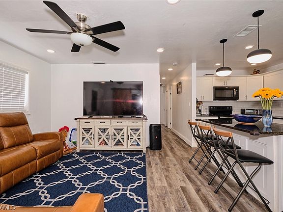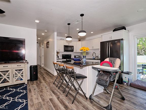 Newly remodeled 3 bedrooms + den home in Fort Myers Shores. The kitchen has been updated with white shaker cabinets, S/S appliances, and granite counter tops. Many of the upgrades include a newer A/C, newer hot water heater, and a new electrical panel. The open floor plan has plank tile throughout the main areas and new carpet in the bedrooms. The metal roof is 3 years old with newly installed solar panels. The extended driveway has plenty of parking, and the backyard has a new privacy fence. The security system is included. This home is in a great location, close to everything including boat ramps.