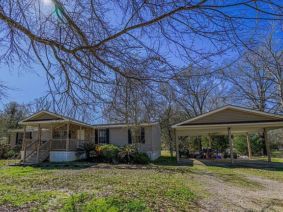Don't miss out on this cute and quaint home tucked away in the country. This home features 4BR 2BA that sits on an enchanting .53 acre lot with mulberry trees, a bald cypress tree, oak trees, and front landscaping. The kitchen sink has been updated to a farmhouse style sink, the HVAC condenser was newly replaced in 2020, new air handler, new roof on home and carport, covered double carport with slab foundation, wood burning fireplace, and covered front and back porches. NEVER FLOODED