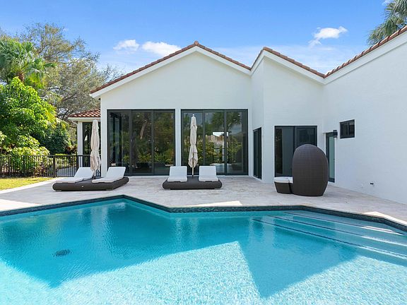 All newly renovated residence offers state of the art finishing' ,3 en-suite bedrooms one of which features a sleek barn door shower enclosure. plus a large den & exercise room & 5.5 baths. Spacious & well appointed throughout. The Kitchen offers all new white cabinetry with a large island, quartz countertops & subway style back splash. outfitted with an induction stove top complete with pot filler, a modern brass hardware wine refrigerator & all Kitchen Aid appliances. Additional features include 12ft. impact windows & 12 ft .impact doors throughout, Italian porcelain tile throughout the living area & a great room highlighted by a lovely modern fireplace. Enjoy outdoor living enhanced by a beautiful raised jacuzzi with a waterfall feature. All complimented by quiet water & scenic views.
