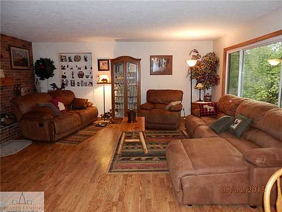Grand Ledge schools. Country-walkout ranch- 6.8 acres - 50x50 Outbuilding. 3 horse paddocks-stalls-mature lot-see double brochure for more details. Backyard is partially fenced between house and pond.