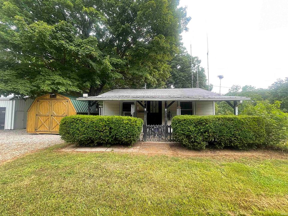 Cozy 1 bedroom, 1 bath with updates in kitchen, living room and bath. Newer laminate floor in living room, and tile in kitchen and utility room. Newer appliances, covered front porch and back porch. 40 X 72 Detached garage/workshop with over 130 storage shelves, extra room on back 18X24, has concrete floor, electric, 2 garage doors, and garden shed sits on 2 acres.