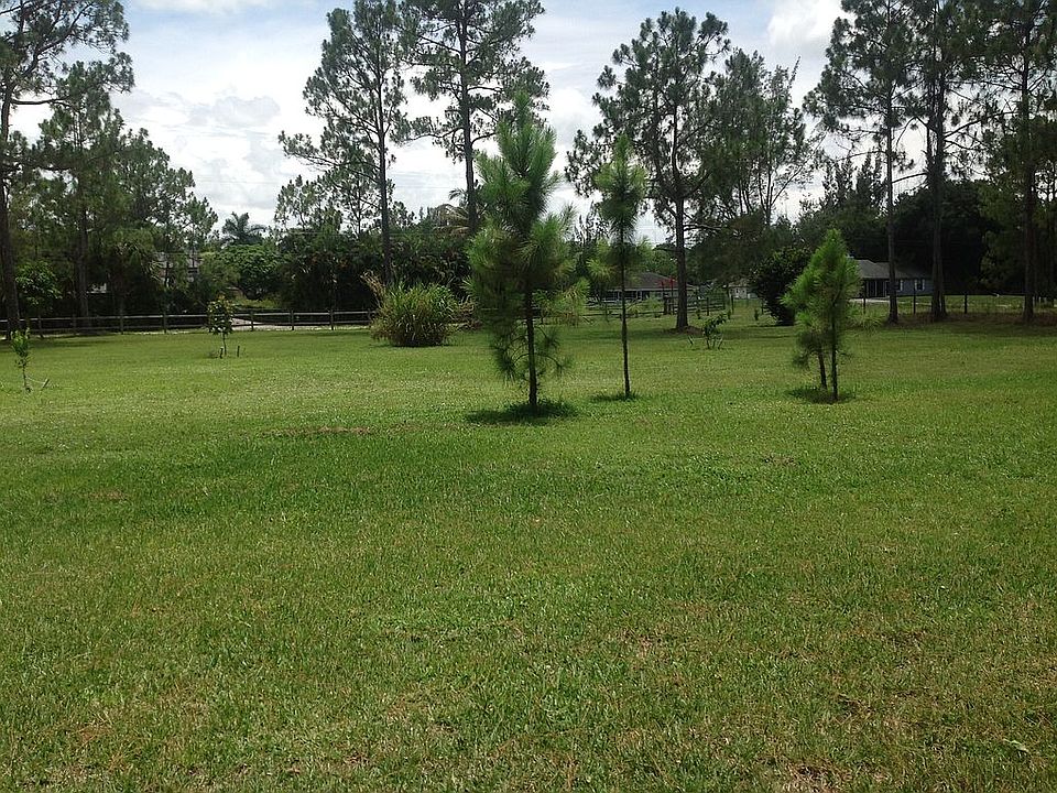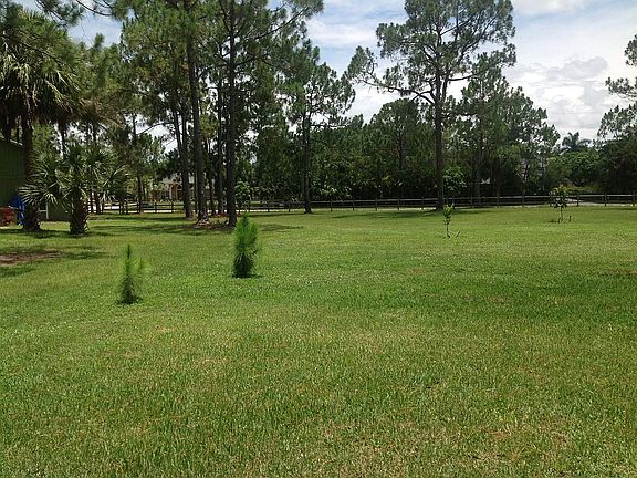 Great 'country' flair in an Acreage 'rambling ranch' home situated in a 2.5 acre secluded park-like setting in this equestrian community with large pine trees, numerous fruit trees and full-coverage irrigation. This uniquely rural setting, for Palm Beach County, is located only 12 miles from downtown West Palm Beach. The spacious open plan 5 bedroom, 3 bathroom home has two masters; one downstairs and one upstairs. A beautiful wooden spiral staircase leads to the expansive private upstairs master which offers an oversized bathroom and walk-in closet. Double french doors lead to a terrace with dramatic views. The split-plan spacious first-level master bedroom also includes its own bathroom and walk-in closet. Dade County pine floors, extensive pine and cedar paneling, a granite fireplace, a large greatroom with vaulted ceiling and plantation shutters characterize this house which has been completely updated with such features as granite kitchen counter-tops, new cabinets, stainless steel appliances and a custom-built kitchen island. With a separate laundry room boasting a new washer and dryer conveniently located next to the open-plan kitchen, two-zone HVAC with two new high-efficiency units, a new water system, new sanitary plumbing and fully remodeled bathrooms; this home is fully updated yet retains its country charm. The large 80-foot long concrete driveway featuring a side parking area complete with a hose faucet is accessed by an electric/remote control gate flanked by imposing wood entrance columns. The large semi-detached garage is approximately 800 square feet with a large double-front and a single-side entrance to accomodate parking for three cars. There are multiple decks and porches. Well located for privacy on a dead end next to a canal, the property is fully fenced with 500 ft of custom-built split rail fence across the entire front of the property which also features an outdoor shower.