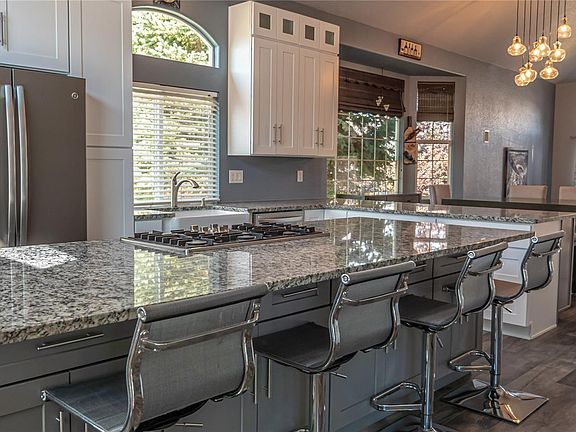 - Description: Open Concept, Newly Remodeled, Granite Countertops, New Soft-Close Cabinets, Double Oven, Farm Sink, Large Island With Gas Range, Vaulted Ceilings