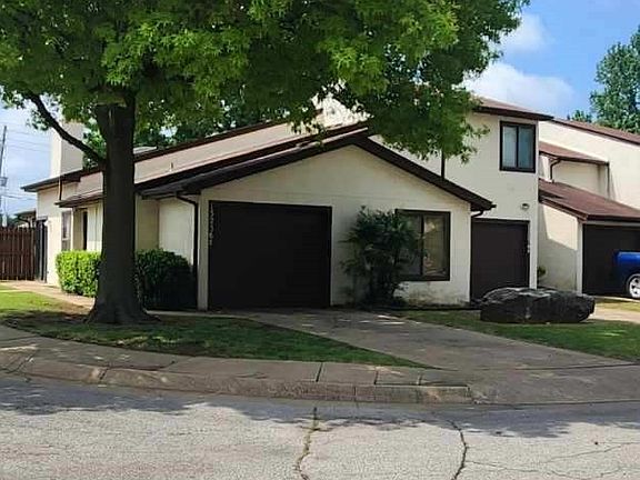 Very Private well maintained condo community in Tulsa at Eagle Ridge Condos. This corner unit has tons of parking space & only 1 adjoining neighbor. Stucco exterior with 1 car attached garage with shelving to remain. New master bathroom walk-in shower. Great walk-in closets. Loft area upstairs could be used as you like. Vaulted living room with wood burning fireplace. Refrigerator stays. Close to highway & shopping. Neighborhood Pool! Hurry!!