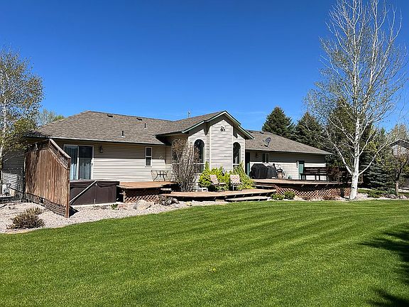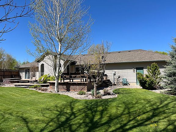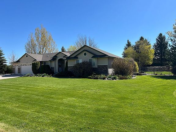 Great family home on 1.3 acres. Private fenced yard with trees and landscaping large deck and hot tub. Large 30 x 40 shop with 12 x 40 covered extension on one side. Community well for culinary water and also irrigation. Outside of city limits peaceful and quiet neighborhood. Three car garage and house fully finished.