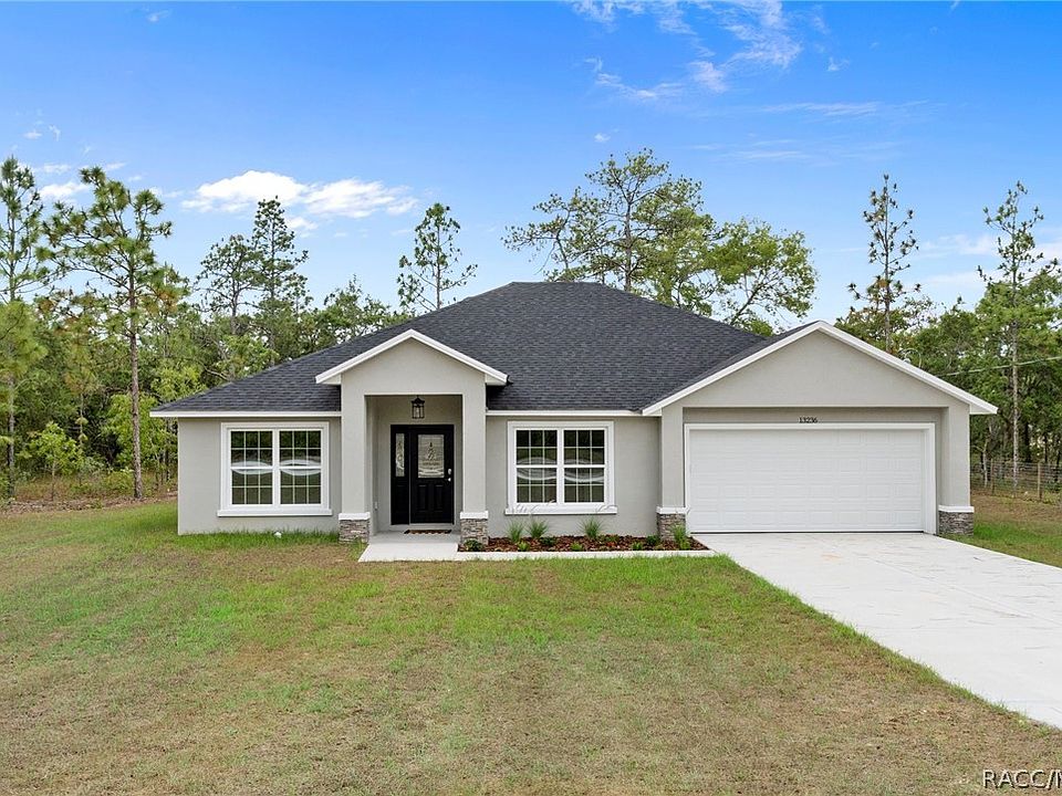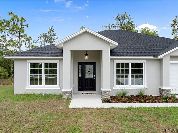 Come fall in love with this beautifully designed NEW CONSTRUCTION home nestled on .46 acres in Royal Highlands with NO HOA fees! With soaring 12 ft ceilings and an open floor plan, this 3 bedroom, 2 bath home encases warmth & simplicity with its stylish fixtures, tones & natural light. Upon entry you will have the formal dining room & flex room, leading into the spacious kitchen equipped with stainless steel appliances, solid wood cabinets and quartz countertops with an eat in bar-top, leading into the family room. The master bathroom features a huge walk-in shower with frameless glass, dual vanities, & a large walk-in closet. There's plenty of room to store your RV, Boat or other toys, and even add a pool. Located just minutes from US Hwy 19, this home offers a quick commute into Brooksville, Homosassa & Crystal River and is convenient to all major shopping & dining. Call to schedule your showing today!