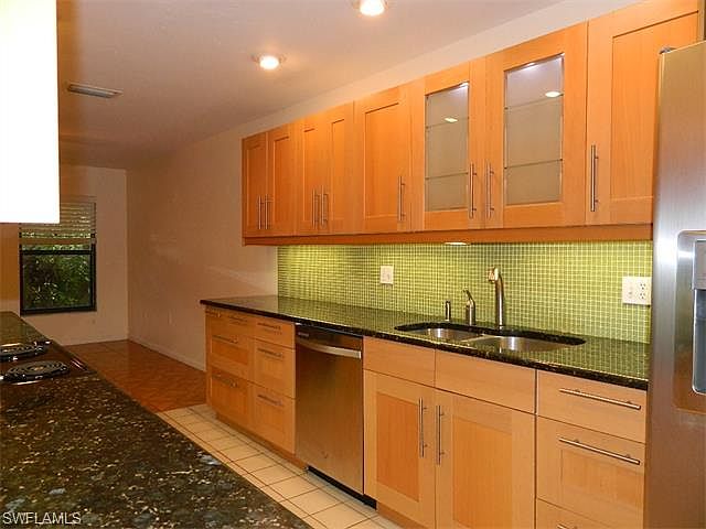 Price Reduction !! Location, Location, Location...Excellent opportunity to own this nicely appointed home in Pinebrook Woods. This home has soaring ceilings in the great room, newly renovated kitchen with maple cabinetry, granite counters, glass backsplash, stainless appliances & under cabinet lighting - 2 bedrooms and 2 baths plus two car garage. Serene setting with manicured landscaping with lush tropical plants, the view from your lanai is private and feels secluded. One of the best kept secrets in Fort Myers - Enjoy owning in a private, gated community with low fees. Just steps away from dining, shopping, movies and more at the Bell Tower Shoppes. Stroll to some of the finest dining and shopping the area. Could be a great investment property or your private piece of paradise.