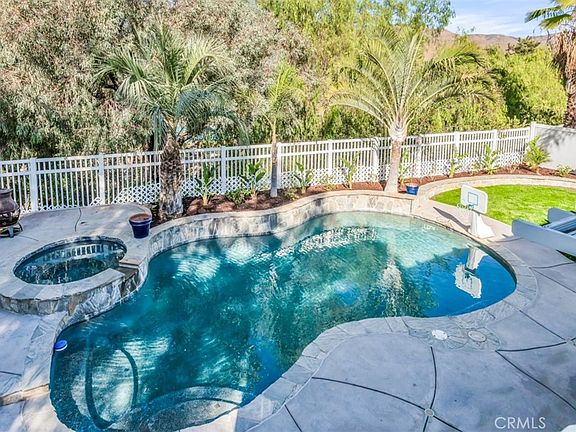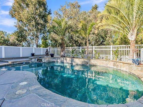 Prime Cul-de-Sac Retreat in Horsethief Canyon Ranch! This stunning 5-bedroom, 3-bath home offers the perfect blend of luxury and comfort. Enjoy the sparkling pool & spa with PebbleTec, a 4-car tandem garage with built-in storage, and an oversized driveway. Inside, discover a bright and airy interior with vaulted ceilings, fresh designer paint, plantation shutters, hardwood-look tile flooring, and plush new carpet. The gourmet kitchen boasts black stainless steel appliances, white shaker cabinets, quartz countertops, a farmhouse sink, and a cozy fireplace in the great room. Retreat to the primary suite featuring a soaking tub with an adjustable mount TV, separate shower, and balcony. DOWNSTAIRS BED & BATH. Remodeled bathrooms. HUGE bonus room/5th bedroom. Energy efficient improvements like LED lighting & ceiling fans throughout and two new 17 SEER A/C condensers. The large 13,068 sq.ft. lot boasts beautiful tropical landscaping, large alumawood patio cover, vinyl fencing, a dog run, and easy access to the community's amazing amenities, including 2 pools, fitness center, clubhouse, tennis courts, sand volleyball, tot lots, sports fields, fitness trail, dog park, botanical garden, private security patrol and a K-8 school – all within walking distance. With LOW TAXES and a prime location, this is the dream home you've been waiting for!