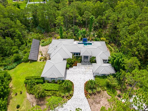 MODEL MASTERPIECE! MIAMI COASTAL CONTEMPORARY MEETS EQUESTRIAN LUXURY. Private 5+ acres. Distinctive home for the discriminating buyer. Finest architectural features. TOP builder/designer. Gated Bermuda style one story w/4-5 bedrooms/office. Walls of impact glass let the outside in. Open floor plan w/sleek contemporary kitchen, Wolf appliances, coffee bar, 8x 11 lighted blue stone agate dining table. Primary suite w/huge custom closet. Primary bath w/dual floating vanities, vessel sinks, double river rock shower. Salt water pool/spa w/water features. Solar Panels provide $40 electric bills! Caloosa is a 32 acre FAMILY oriented community w/LOW HOA, tennis, basketball, riding trails w/jumping rings, paddocks, playground. Excellent school district. Room for large barn LOW TAXES! (Press Mor LIST OF FEATURES