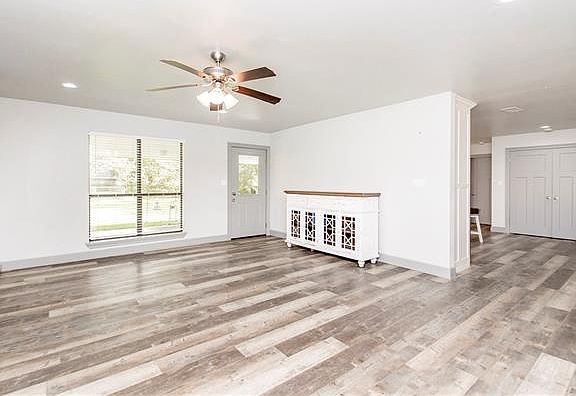 This is must see 4 bedrooms 2 bath brick home that sits on almost an acre. Kitchen has been updated with white cabinets and granite counter tops along with stainless steal appliances. This home is great for entertaining as it has open floor plan between kitchen, dining and living area. There is no carpet in this home which has beautiful laminate wood floors throughout. Outside you can enjoy the covered rear patio along with oversized fenced back yard and large oak trees.