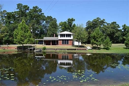Large, unique home on over 4 acres in Buna, TX!!! 3 Bedrooms, 3 FULL baths, as well as a 1 car garage with attached 2 car carport. Best of all; Custom built with large pond in front of home with brick bulk head and man made spillway. One of a kind doesn't cover this home! Master bedroom down with large on suite master bath with jetted tub and separate shower. Guest full bath and laundry room down stairs as well. Upstairs bedrooms are large with a jack and jill bathroom as well as office/study or even nursery off of front bedroom. Endless possibilities with tons of character. Call to view this one of a kind home today!.