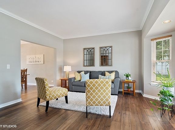 Hello HGTV and resort-style living! No expenses were spared when the current owners remodeled the main floor of this home last year. The kitchen was completely updated and is gorgeous! 42" white cabinets with crown molding, quartz counters, tile backsplash, custom sink with attachments, new lighting, stainless appliances, porcelain tile floor. It doesn't end there! Luxury vinyl flooring and fresh paint complete the main level. Upstairs you will find a huge loft area and three bedrooms - all with ceiling fans and brand-new carpeting. The master boasts a trey ceiling, walk-in-closet and private en-suite bath with dual sinks, whirlpool tub and shower. The full, finished basement includes a huge recreation room, 1/2 bath, ample closet space to store toys and games, a bonus room that is currently being used as a home-office and a large storage room. Located on a cul-de-sac, backs to Harvest Glen Park, features an enclosed vegetable garden, spacious paver patio, play set, above-ground pool and deck, fully-fenced yard, beautiful landscaping, front porch, and 3-car garage. Roof, HVAC and windows all 8 years old, water heater 12 years and siding original. Highly rated Plainfield North HS, close to Route 59 for all your shopping needs, Pace express bus to Union Station and close to I-55, perfect for commuting!