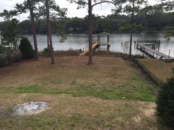 WATERFRONT FORECLOSURE YOU HAVE BEEN WAITING ON!!!!!!!!!!!!! Custom built high quality home on Fanning Bayou with a 1.7 acre lot and Boathouse with five ft. draft and a lift to accommodate a 10,000 lb. boat. This 3 or 4 bedroom home includes an efficiency guest suite over the detached garage and 4 large storage spaces. Living space in main house is 3 bedrooms plus a large office, and laundry room with cabinets and sink. Floors are dark rough sewn wide wood plank engineered flooring and an open floor plan with 12 ft. ceilings and lots of tall windows for natural light. The property has a with wrought iron fenced backyard and custom iron entry gate. Entrance drive is 900 ft long and lot is wooded along driveway for privacy. 110/220 Amps on the dock and running water. You won't find a more unique and clean cut distinctive style home. Flood Z