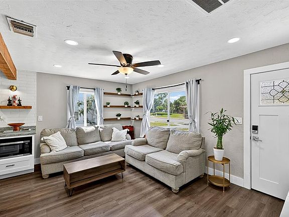 Welcome to this beautifully updated 3-bedroom, 2-bath home in the heart of St. Petersburg, ideally located just minutes from Gulfport, downtown, and the beaches. Situated on a fully fenced lot, this move-in-ready property offers great curb appeal with a fresh exterior, charming wood accents, and a welcoming front porch. Inside, you’ll find a light-filled open layout with stylish updates throughout, including luxury vinyl plank flooring, modern lighting, and a remodeled kitchen featuring granite countertops, stainless steel appliances, subway tile backsplash, and floating wood shelves. The spacious primary bedroom includes a walk-in closet and access to a bonus room ideal for an office or nursery. A detached screened patio offers the perfect outdoor retreat with space to entertain or relax in private, while a large shed provides extra storage. Additional highlights include newer HVAC, indoor laundry, and a flexible floor plan with dining and living spaces designed for comfort and functionality. This home offers a perfect blend of charm, convenience, and updates—schedule your private tour today.