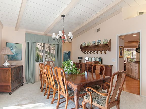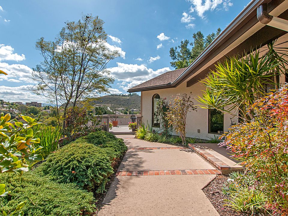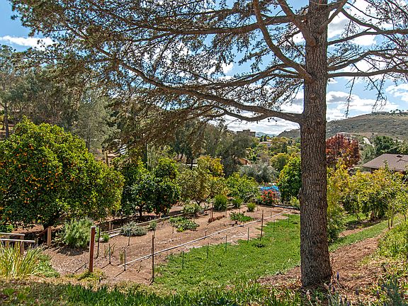 This immaculate ranch style home is situated on over an acre of land with beautiful mountain views from various points of the property. You'll love the open space & size of the expansive remodeled chef's kitchen big enough for any family get-together. Kitchen features a breakfast nook & breakfast bar and opens to the family room & back yard. Lovely remodeled bathrooms w/ granite counters. Enjoy a glass of fresh squeezed orange juice on the quiet view deck, just squeezed from your own mature citrus grove.