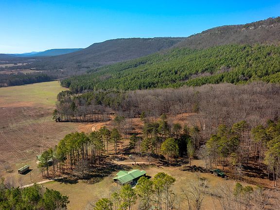Serene land & views galore! This rural get-away offers 450 plus acres of endless possibilities...perfect for a private hunting retreat, farming, equestrian enthusiasts, and/or a nature preserve. Numerous ridge trails below Lookout Mtn offers great recreational activities such as horseback & ATV riding, hunting, & hiking. Approx. 100 acres are cleared & level pasture (great for farming) with the remainder of land in hardwoods and pines (approx. 200 plus acres are pines 25-27 yrs old), 3 stocked ponds....2 being spring fed. Blowing Springs Cave is located on this property. There is an abundance of wildlife (deer & turkey). Also on the property are grapes, pears, plum, & figs. There is approx. 75-80 ft. long & 40 ft wide pole barn/shed on property. Property also has a campsite w/ concrete pad, septic, water & electricity. The home offers spacious, one level living with a split bedroom floor plan. All rooms are very spacious and you will LOVE the interior custom doors made of pine and solid hardwood floors. The home features 2 master bedrooms with private baths, large laundry room, an EXTRA spacious eat in kitchen with plenty of cabinet and counter space, double oven and surface unit. The huge, formal dining room off of the kitchen is sure to please with double doors that lead to a covered screened porch. This room could also be used as a den/rec room. Exterior of home is rustic giving the cabin feel with a large covered front porch, side deck off of one of the master bedrooms, covered screen porch and a large concrete patio off of the back kitchen door. The building with wheels beside the pole barn will not remain with the property. Call today for a private viewing of this GORGEOUS property and home!