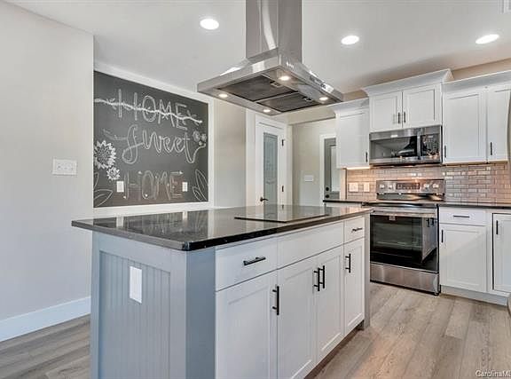 Step inside this "smart home" and you're overcome by modern design and generous upgrades. From the open floor plan to the luxurious kitchen to the master suite, this home will instantly feel like a forever home, your dream home even! It features a massive rear porch with upgraded CABLE RAILING & ceiling fan, perfect for entertaining guests and showing off your summer BBQ skills. And your massive drive way will fit all those guests! Spa out in your new garden tub and enjoy the built-in bluetooth speaker! The Kitchen boasts top-rated Samsung BLACK STAINLESS STEEL appliances, an island/bar with induction cooktop, and a comfortable built-in desk for those fun zoom video calls. Mini Mud Room too! Waterproof luxury vinyl plank throughout! Security system included! Your new escape awaits!