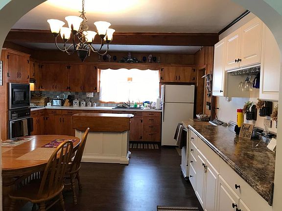 Experience the joy of cooking in this fully-equipped large dine in kitchen area with Lots of cabinet space, Work Island and all appliances included. Large fenced in back yard. 2 car unattached garage with several attached storage sheds. Nice dry basement area. Several updates include, furnace/ Ac, Hot water This three bedroom 2 bath home has So much space. Both yard and home are spacious and well kept. heater, sump pump and Check value, pex water lines, breaker box, vinyl siding. Very nice move in ready home!