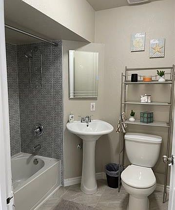 Turn key Airbnb... small but cute, 2 bedroom 1 bath stucco cottage on a large corner lot. Recent remodel to include new bathroom & new kitchen. New tile flooring in kitchen and bath. New tub, toilet and new tile surround in bath. New kitchen cabinets, new kitchen counters, new butcher block eat at bar, new stove/oven. New interior paint throughout. New tv in living room. New furnace in crawl space. This property is zoned R5 and a permit with the City for an Airbnb is available for this property. This home is completely furnished and ready to rent out! Large lot with a 1 car garage, barn style carport and 2 storage sheds with concrete floors. Plenty of room for RV parking. R5 zoning gives you the opportunity to add another residence to the property or eventually an apartment building.