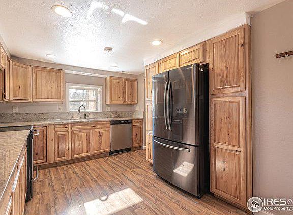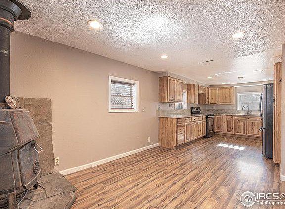 Prime location, close to everything! Cute and affordable home on a quiet side street. Kitchen completely updated in 2017, featuring ample storage in the knotty alder cabinets, attractive granite countertops, newer stainless appliances and laminate flooring. New furnace to be installed prior to closing with a full price offer! Home has a wood burning stove to keep you warm and cozy all winter long. The full bath has been updated and this little gem also features a newer hot water heater, newer roof, newer privacy fence and an extra storage building (20x8) with concrete floor attached to the 2-stall garage. The home is situated on a large corner lot with a new sprinkler system. Close to downtown Loveland, Chilson Rec Center, shopping, restaurants, and easy access to I-25!