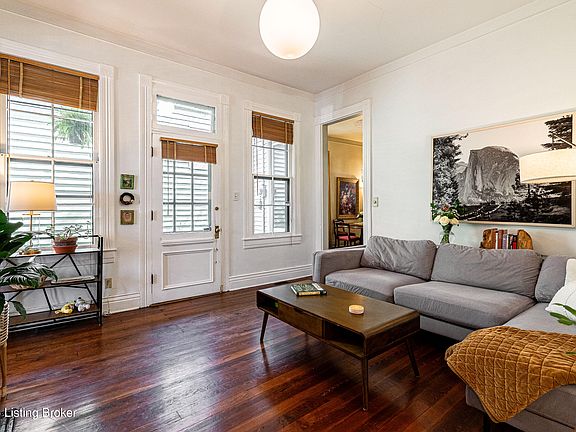 Boho and chic describe this delightful cottage in the Original Highlands! The gated entrance to the courtyard adds to the allure and ambiance of the home. It's so private and tranquil you will forget that you are in a highly sought after urban area. It's literally a home that is the perfect escape to provide respite from the fast-paced world we live in. It's soothing and peaceful blending modern comforts with vintage architecture and style. Large windows, tall ceilings, hardwood floors, exposed brick and two decorative fireplace mantles capture the original beauty. The dining room has an elegant feel with a wall of bookcases to showcase your books and artistic pieces. Both bedrooms are generously sized! The front bedroom has two amazing windows, a beautiful mantle and a walk in closet. The rear bedroom is more secluded and private and has access to the bathroom. The living room, dining room and kitchen flow nicely for entertaining. It's a pleasure to entertain both inside and out! The outdoors is a cozy oasis with a brick patio and a deck. There's room for a firepit on the brick patio and alfresco dining on the deck. There's a convenient and cute storage shed for outdoor equipment. Back inside you'll notice the laundry is tucked between the bathroom and kitchen for easy access. The bathroom has an earthy quality that is soothing. There's a whirlpool tub under a skylight! The vanity is custom designed with a live edge wood top and a vessel bowl. The whole house oozes charm, quiet sophistication and comfort. Good vibes radiate throughout the house, it's a cheerful and well loved home ready for new owners! The location is supreme! Easy access to all the things you love in the Original Highlands. Whiltshire Pantry is at the end of the block, and you're close to Paristown Pointe, Logan Street Market and the night life on Bardstown Road. Walkability is great and parking is never an issue with houses only on one side of the street. This home truly captures the essence of a Bohemian lifestyle!