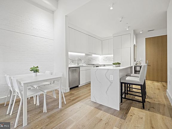 The future is bright in one of the best 1 bed/1 bath condos in the rarely available, LEED certified Buchanan School. You'll enjoy 700 square feet of fully above ground, sun-filled space with epic, 10’+ high ceilings, exposed brick, and oversized windows. This thoughtfully designed unit provides a perfect flow for your life with a thoughtful floor plan ideal for entertaining. The kitchen is a chef’s delight with ample cabinetry and counter space, large Calacatta quartz waterfall island, full height quartz backsplash, Bosch appliances, LED under cabinet lighting, and a refrigerator integrated into the custom cabinets with panels. The spacious bathroom is a true retreat with a tub shower with built-in ceramic nook, large dual vanity with drawers and cabinets, and marble herringbone floor tile. With entrances from both the living area AND the bedroom, the bathroom serves as an en suite while retaining easy access from the kitchen for guests. Next to the bathroom, find your must have luxury - a stacked, in-unit, front loading laundry set. Storage is a breeze with a coat closet and dual primary closets with the option to transform your large walk-in into a small office. This well appointed and luxuriously modern space is ideally situated near the building entrance, with not a single step up or down - just walk right in with your groceries and your pup. Nestled in Capitol Hill, Buchanan School is within walking distance to two metro stops, Safeway, Frager’s Hardware, The Roost Food Hall, Mangialardo's Italian Shop, Sweet Crimes Bakery, La Lomita, Trusty’s (the beloved local watering hole) and many other restaurants, boutiques, and practical amenities. A bike room, mail room, beautiful common room with pocket doors for your private parties, landscaped, communal outdoor patio with grills, and landscaping are all included and, most importantly, The Buchanan School is pet *and* investor friendly with a low monthly fee making this a flexible investment that fits into your bright future, wherever it takes you.