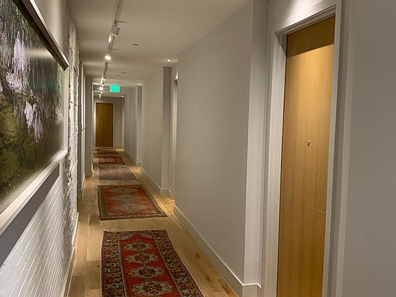 Within the unit, 108" long sectional from West Elm, with natural hard wood coffee table, area rug, and 50" flat screen. Bar cart, and bar seating and bright recessed lighting. In the kitchen, full cookware, cutlery, plates bowls and glasses from Pottery Barn. In the bedroom, a queen sized bed from Stearns and Foster, with hard wood bed frame. Double lamps and tables from west elm, with full mirror and area rug. The building has a Beautifully landscaped private courtyard, library room and outdoor furnished grilling area. The building is also zoned for street parking unlike any other rental in the immediate area.