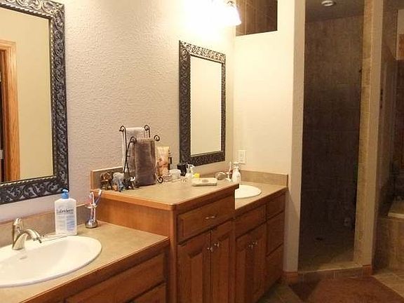 Beautiful home in NW Bismarck with 5 bedrooms and 3 baths. Awesome landscaping with a view of the coulee. Gourment kitchen with double ovens,granite,surround sound system, rich custom cabinets, granite kitchen sink, master suite, zoned heating and so much more. The living room and dining room hosts a three sided fireplace and large stately windows that take in the gorgeous view. The master suite offers heated tiled floors, walkin custom shower and jacuzzi tub. The entire yard has been professionally landscaped with colorful plantings and flowering shrubs. The home is surely one not to be missed.