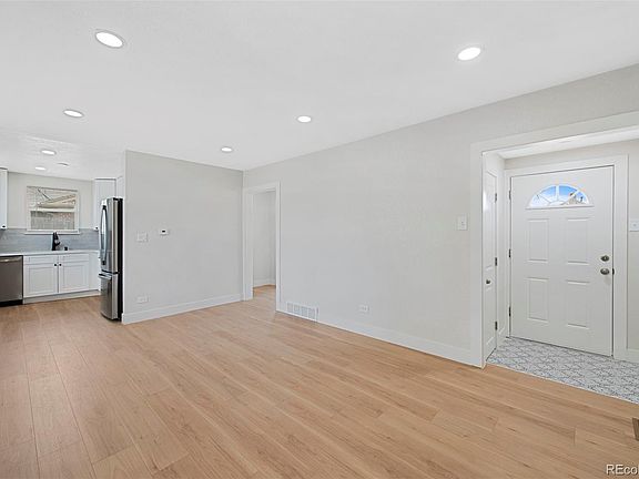 Welcome to this adorably updated ranch with two beds, one bath, and an attached one car garage in Aurora North. With many recent updates, this home is ready for you to move right in! This lovely home has a light and bright family room with new vinyl flooring throughout and lots of natural light. The remodeled kitchen has new stainless steel appliances, new white cabinets, new subway tile backsplash, new vinyl plank flooring, and new quartz countertops. The remodeled full bathroom in the hallway is close to both bedrooms and has new tile surround, new vanity, new tile flooring and new fixtures throughout. The bedrooms each have two large windows and this home really shines with neutral, fresh new interior paint. The attached one car garage has extra storage space and a long driveway for additional parking. Two additional updates to this home include a new roof installed November 2024 and a new electrical panel installed November 2023. The huge, fenced backyard has ample space for tools and toys, with easy access to the alleyway. This home is easily commutable to the Downtown Denver, Lowry, Fitzsimons Campus, with easy access to I-70 & I-225, the Light rail, DIA and more.