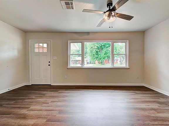 downtown Guthrie and just minutes from I-35! Laminate floors and new carpet throughout! Upon entry, you are greeted with a formal dining space that could be a second living area with a giant window. The kitchen features storage, stainless steel appliances, and access to the beautiful backyard. A spacious bonus room off the kitchen could double as an office. The Large living room offers tons of natural light and access to the backyard. The Primary bedroom located off the living room features a walk-in closet and private en-suite. The primary bathroom features a walk-in shower and storage. Two bright, airy guest bedrooms with spacious closets share the full bathroom with a shower/tub combo. The large backyard has an open patio and mature trees.