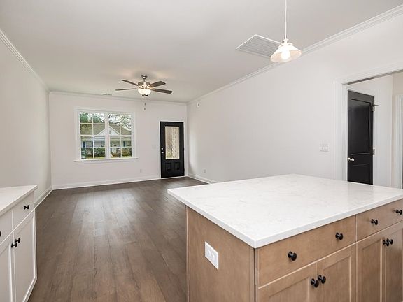 ANOTHER MAJOR PRICE REDUCTION and SPECIAL BONUS....SELLER will pay ONE PERCENT of LOAN AMOUNT in BUYER CLOSING COSTS if property is under contract by 9:00 PM JUNE 6, 2023. This NEW CONSTRUCTION home is completed and ready for you to MOVE IN. You requested and we are delivering.....one-level living with attached garage and quality upgrades. Home has open-concept living-dining-kitchen area. ENGINEERED-WOOD FLOORING throughout, except in baths and laundry. Kitchen has ample cabinets and center eat-at island, all with QUARTZ tops. Dishwasher, range, and microwave. Spacious walk-in pantry. Hallway with drop station and hard-tile floored laundry room. Owner's suite with dual-sink vanity and tub/shower bath and walk-in closet. Plus two additional good-sized bedrooms and a guest bath. Mud room entry (with drop station) from garage. Front concrete-floored porch and rear concrete patio. DON'T MISS THIS OPPORTUNITY.